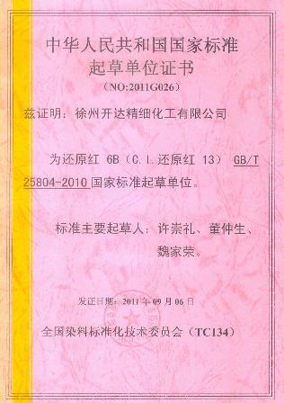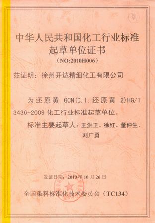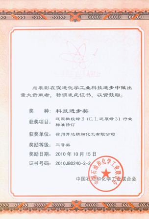 為促進整個行業(yè)產(chǎn)品質(zhì)量的提高和穩(wěn)定,我公司主持制/修訂了12項還原染料產(chǎn)品標(biāo)準(zhǔn)和1項方法標(biāo)準(zhǔn),標(biāo)準(zhǔn)中多項指標(biāo)達到國際領(lǐng)先水平。將為提升我國染料行業(yè)產(chǎn)品檔次和附加值,減少下游客戶在使用過程中的三廢排量起到積極作用。其中2項標(biāo)準(zhǔn)獲得了中石化科學(xué)進步三等獎。修訂了3個還原染料的生產(chǎn)安全技術(shù)規(guī)范,修訂后的標(biāo)準(zhǔn)成為行業(yè)強制標(biāo)準(zhǔn)。為加強企業(yè)安全生產(chǎn)監(jiān)督管理,防止和減少生產(chǎn)安全事故的要起到了指導(dǎo)作用。